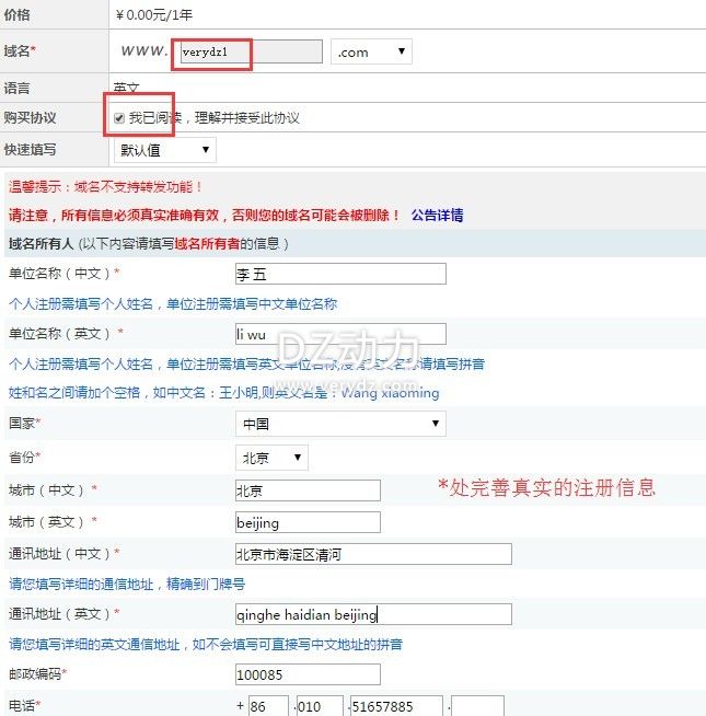 5、完善域名的注冊信息(如何注冊域名)