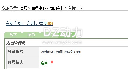 1) 在m.yaqcbj.com上登錄,會員中心->我的主機->詳情->管理員