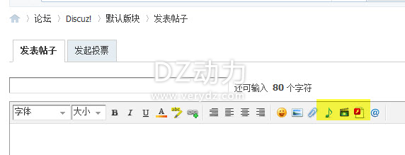 5.在前臺(tái)發(fā)帖的時(shí)候編輯器里有可以看到相關(guān)功能了。