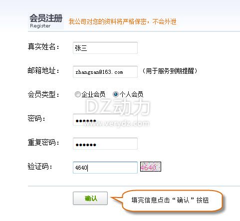 個人會員和企業會員僅僅是性質不同,服務和價格是一樣的,下圖為企業會員注冊頁面;
